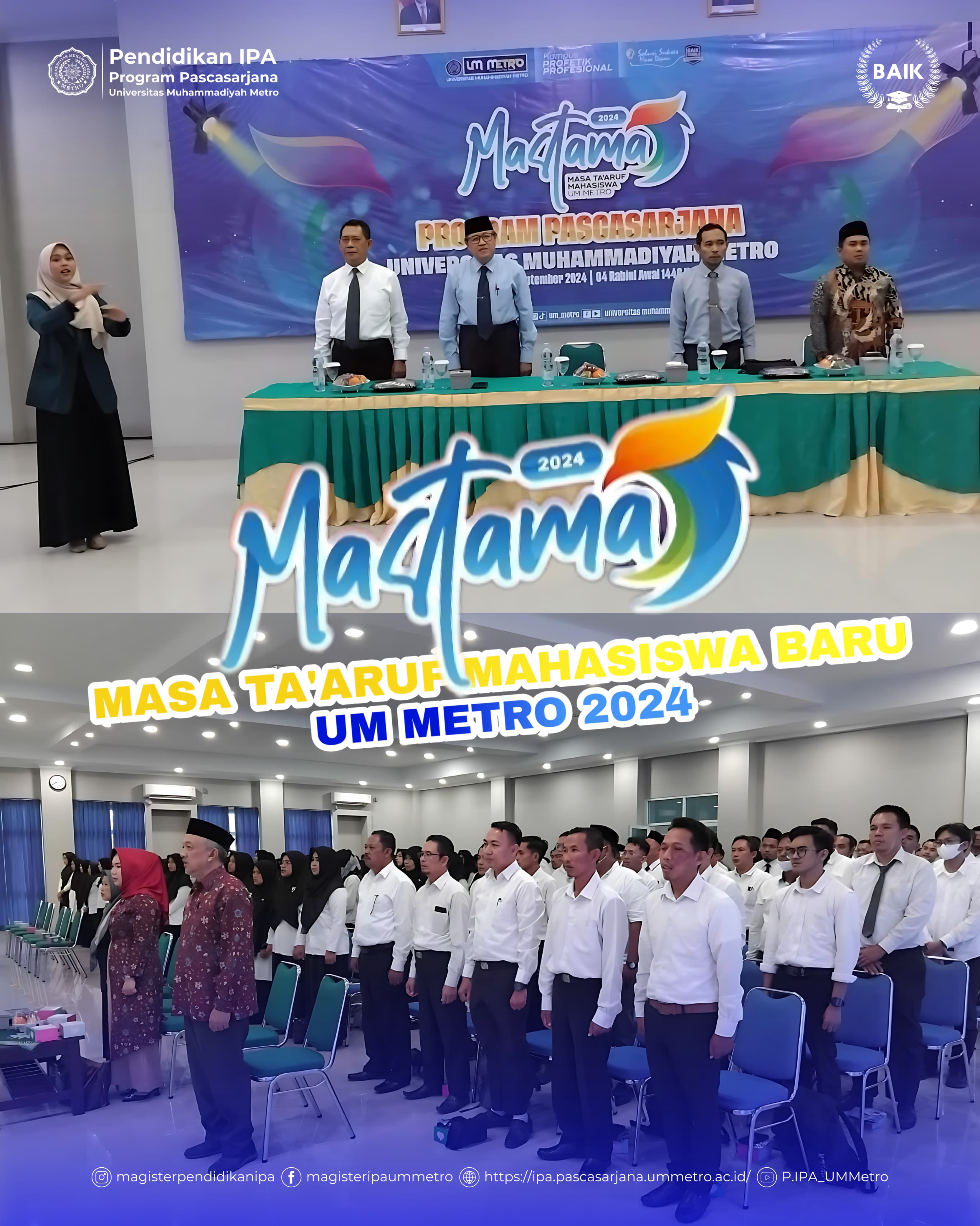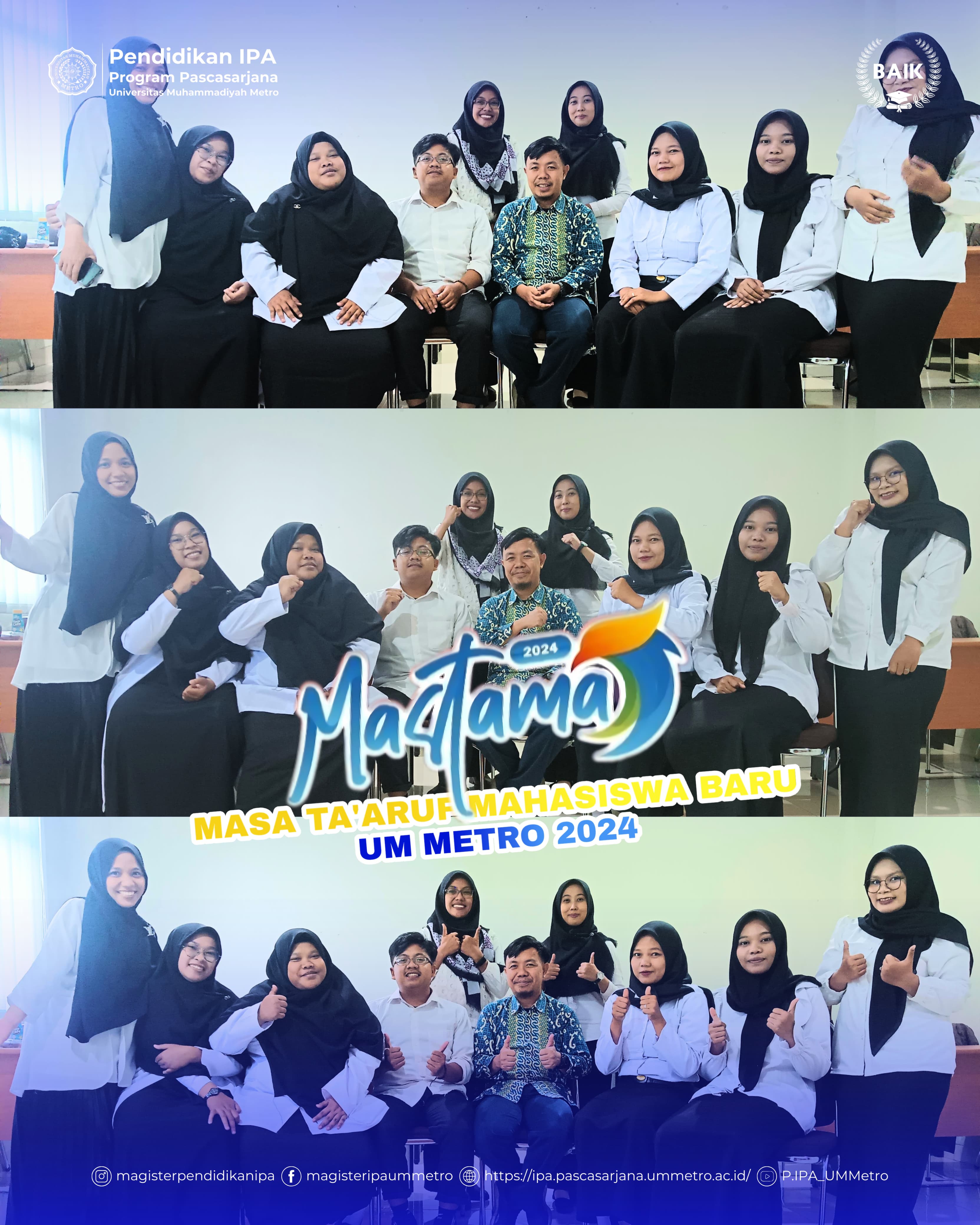 Masa Ta'aruf Mahasiswa (MASTAMA) Program Pascasarjana Pendidikan IPA Universitas Muhammadiyah Metro resmi digelar pada hari Sabtu, 7 September 2024, di Aula Fakultas Ilmu Komputer. Acara pembukaan yang berlangsung meriah ini dibuka langsung oleh Wakil Rektor I Universitas Muhammadiyah Metro. Kehadiran beliau semakin menyemarakkan suasana hangat di antara para mahasiswa baru.